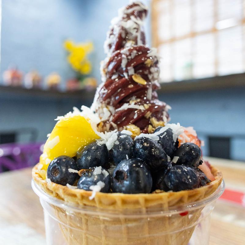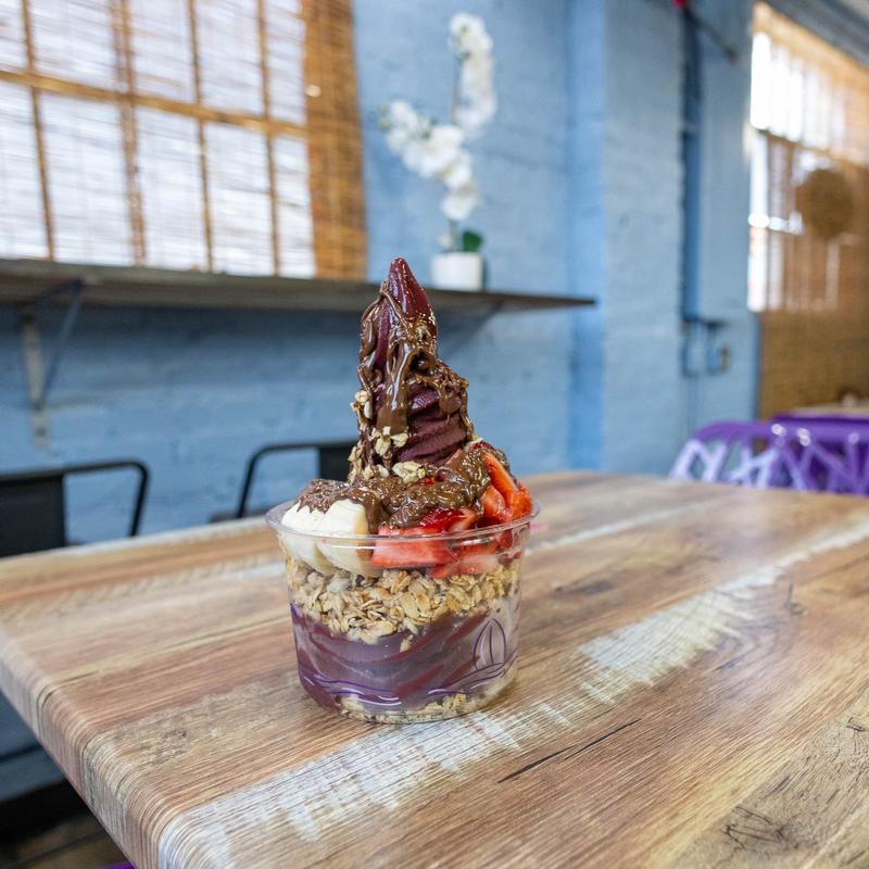In every soft serve bowl of our acai, you’ll experience our commitment to natural goodness. Our acai, free from added sugars and trans fats, is made from 100% organic acai and 100% organic juices. This preserves its nutritional integrity, aligning with our philosophy of wholesome treats. Enjoy the true essence of acai, rich and vibrant, without unnecessary sugars or unhealthy fats.